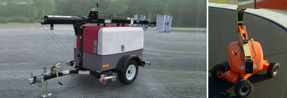 Portable light tower with DCPD paneling and VARTM leak-proof chassis pan for environmentally sensitive sites.